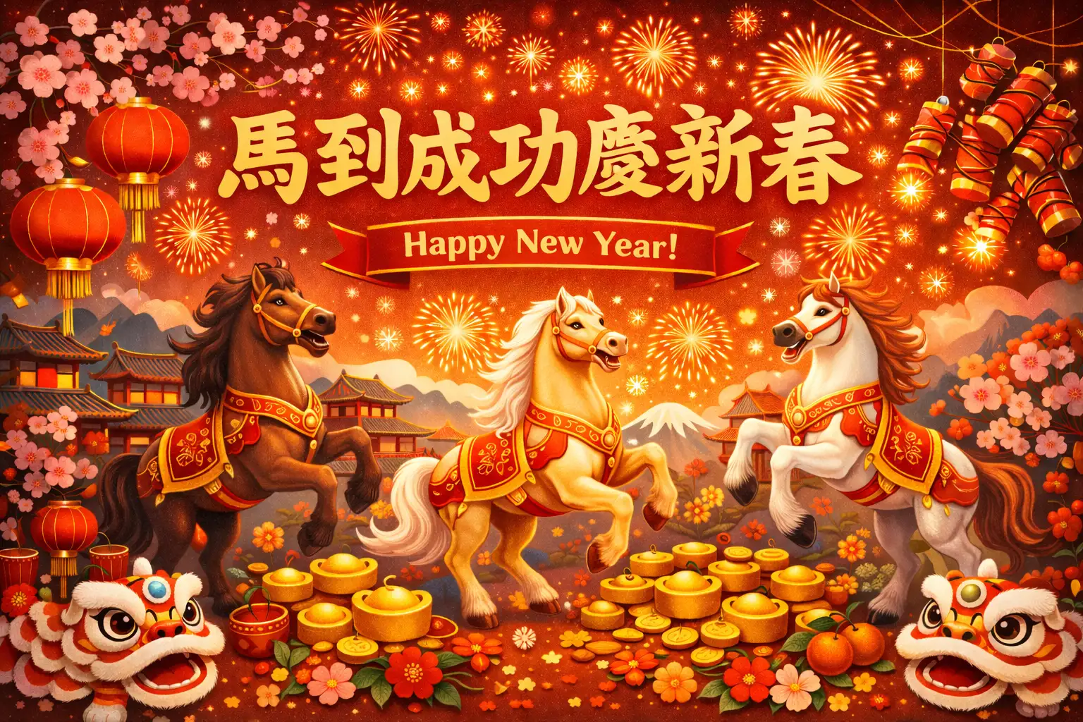 馬躍新程,心安順遂,新春啟程,福運奔騰